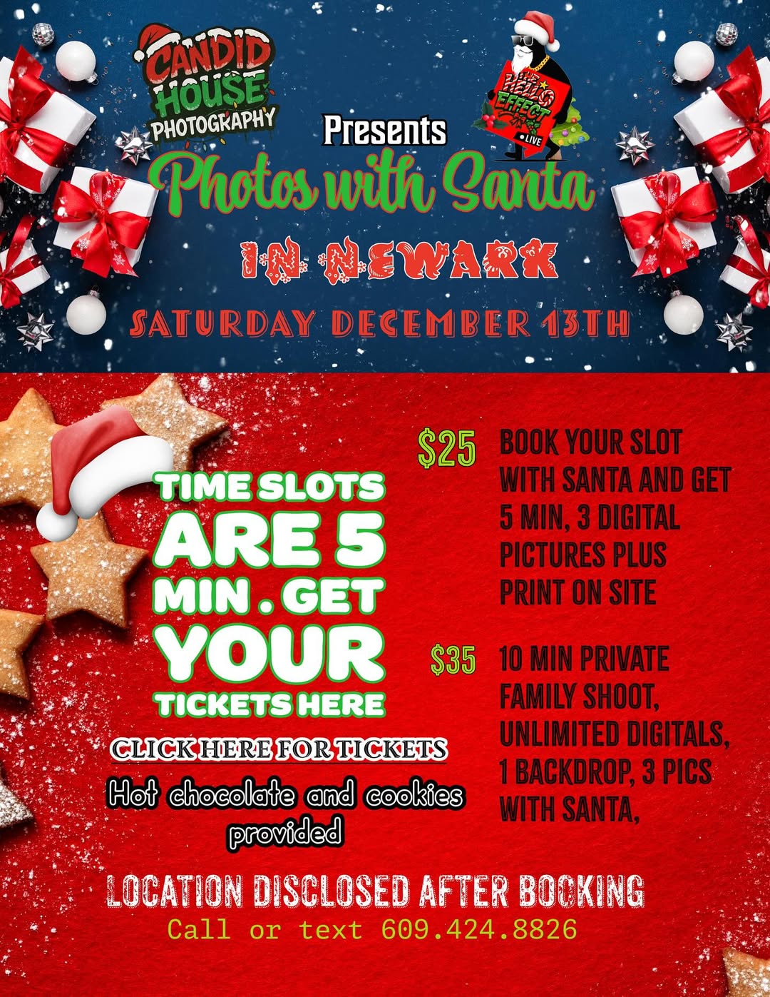 Bring your family, friends, or little ones — capture those festive smiles, warm moments, and holiday drip with Santa in the building!